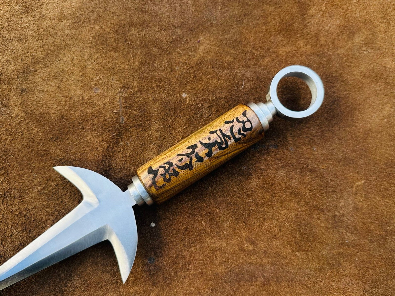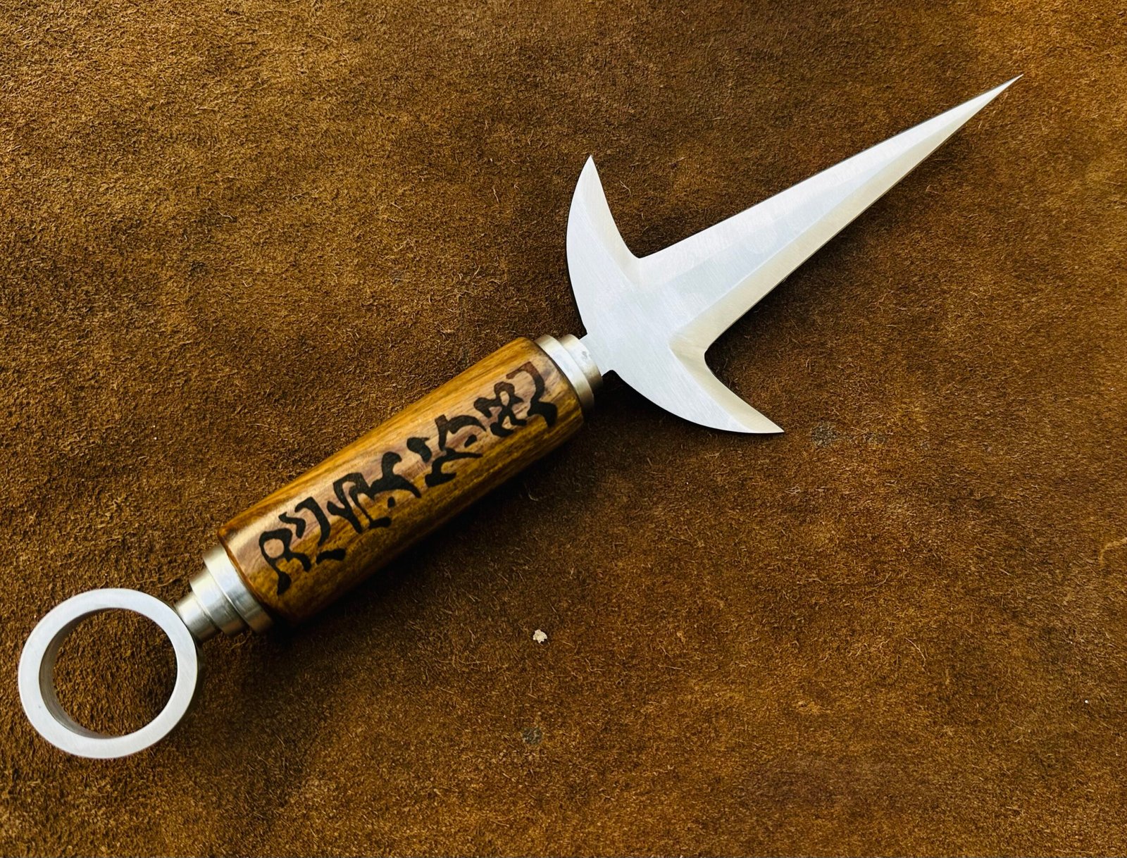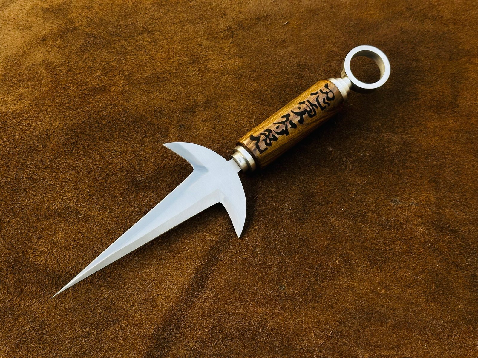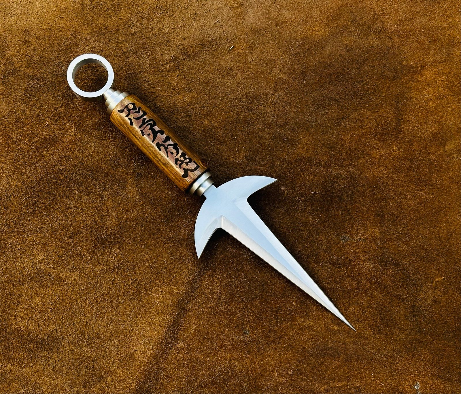 Crafted to replicate every intricate detail of the original kunai seen in the anime series, this Flying Thunder God replica stands as a testament to precision and quality. From the sharp-edged blade to the engraved seals, the design mirrors the weapon that defined Minato as the ‘Yellow Flash.’ Smooth finishes, durable materials, and visually striking features make it a valuable addition to any collector’s showcase or a standout piece for cosplay performances.